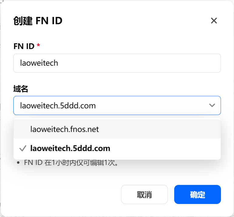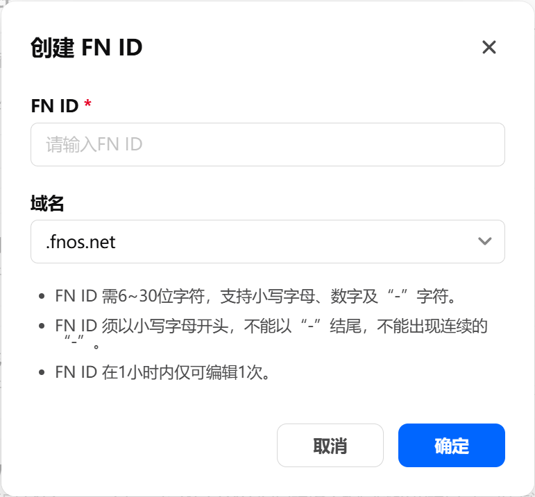 登录之后需要创建一个FN ID,输入FN ID,域名会自动填充