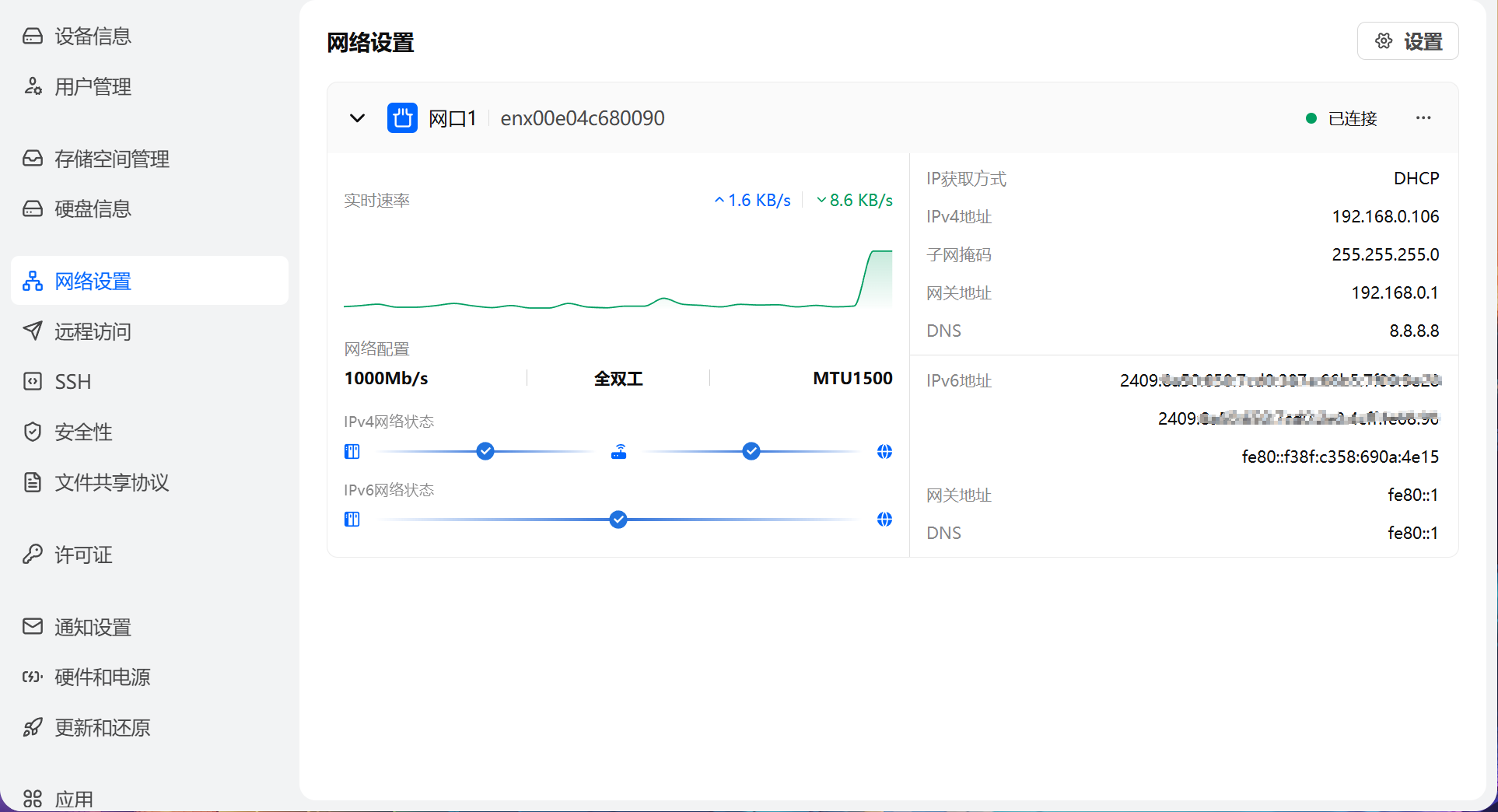 开启了IPV6之后在网络设置中就能看到240开头的IPV6地址,而不只是fe80开头的地址