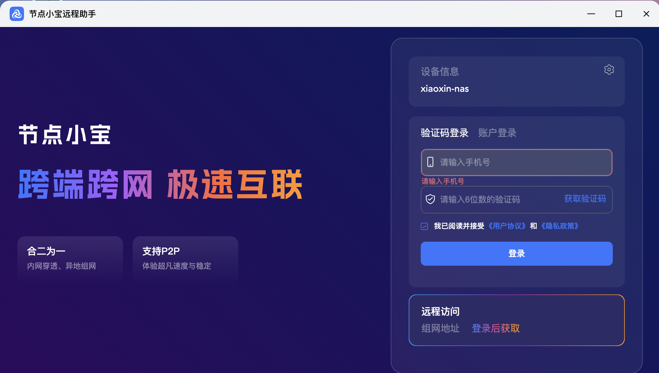 异地组网是P2P直连,免费且速度快,目前我认为节点小宝是最容易上手的!飞牛商店一键安装