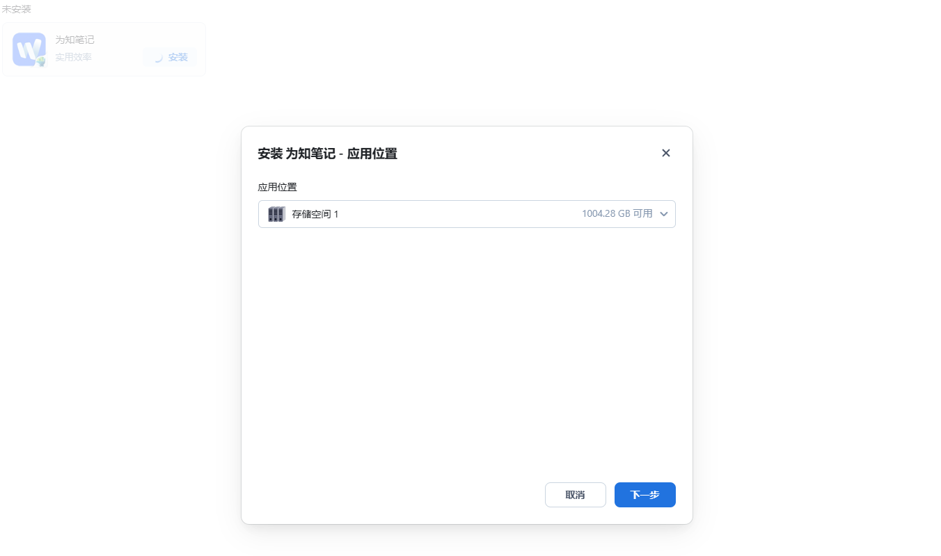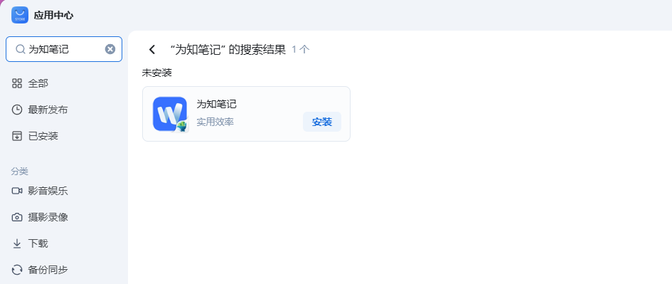 1、fnos应用中心--》搜索为知笔记--》点击安装