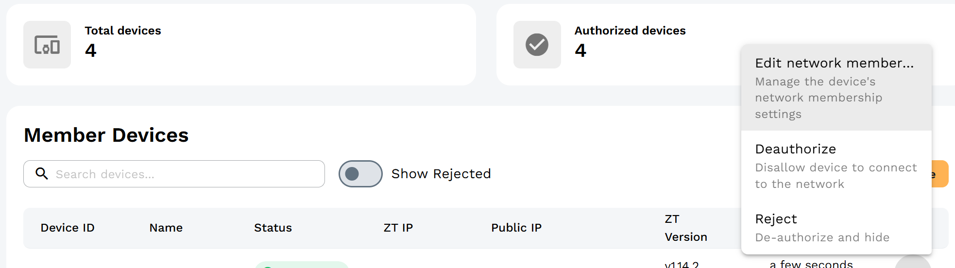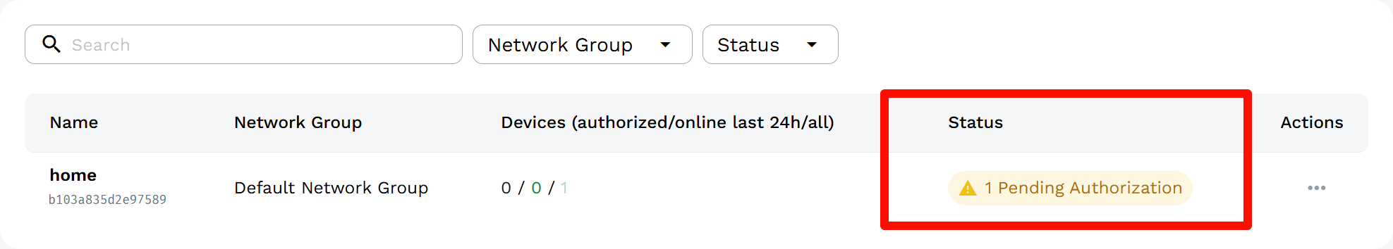 docker run -d --name zerotier --network host --cap-add NET_ADMIN --device /dev/net/tun zerotier/zerotier:latest abcdefdeadbeef00安装之后会在管理端界面显示一个待认证的设备